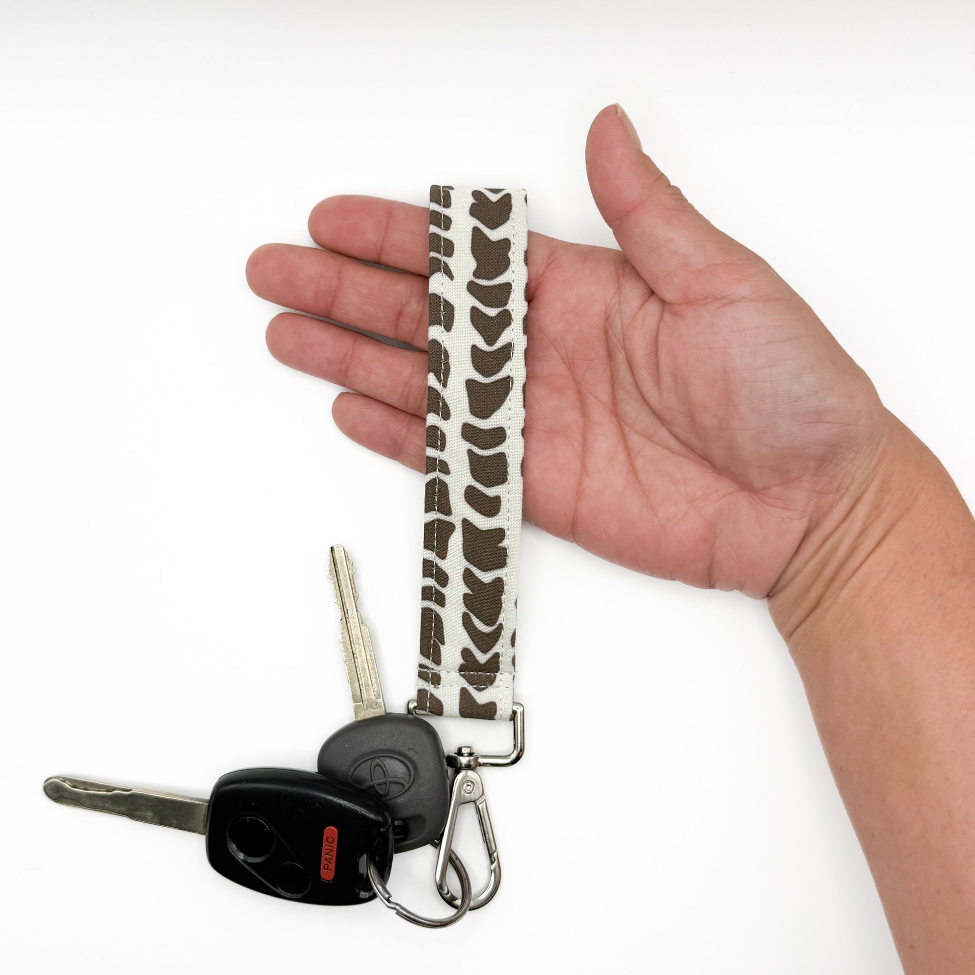 * Sewn-in Metal key ring + swivel lobster clasp – holds multiple keys securely